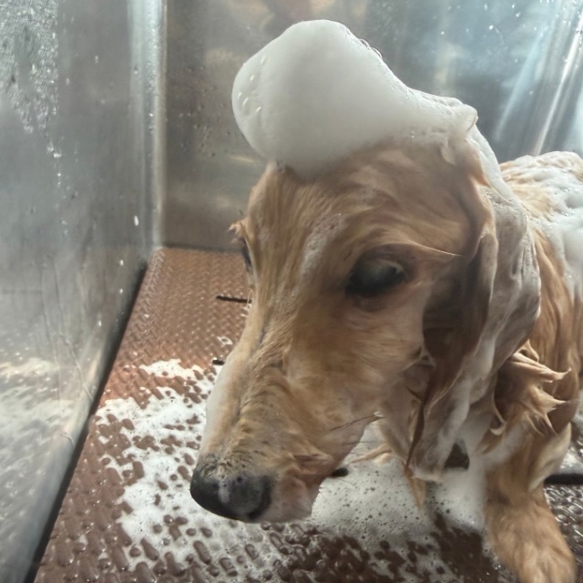 シャンプー中は少しフラフラするけど水温や心拍を見ながら手早く洗い上げます。